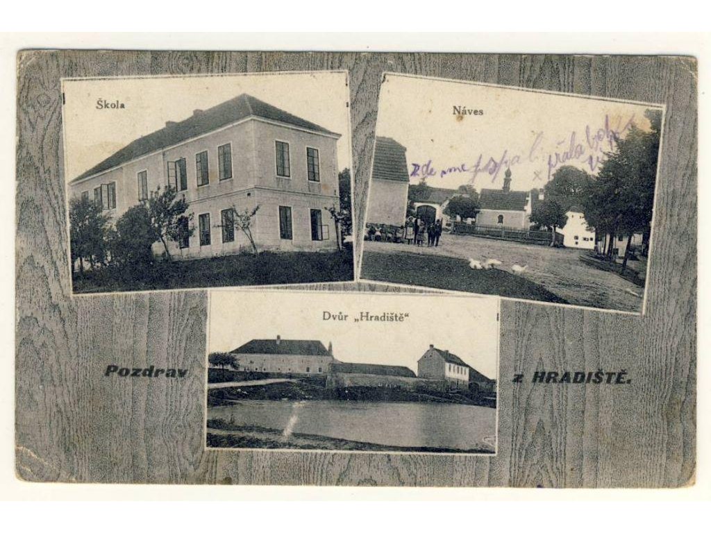 01 - Benešovsko, Hradiště, 3 - záběr, náves, škola..., cca 1918