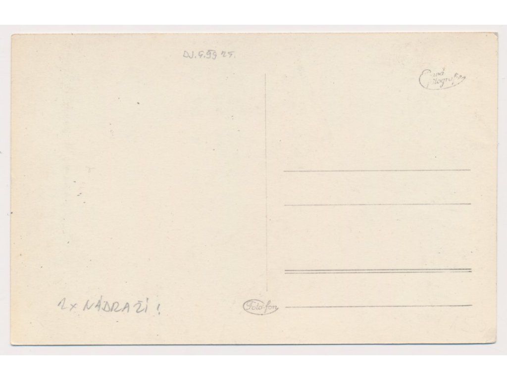 02 - Beroun, 12-ti záběr dominant města, mj. Nádraží s lokomotivou, Kavárna Slavie..., cca 1930