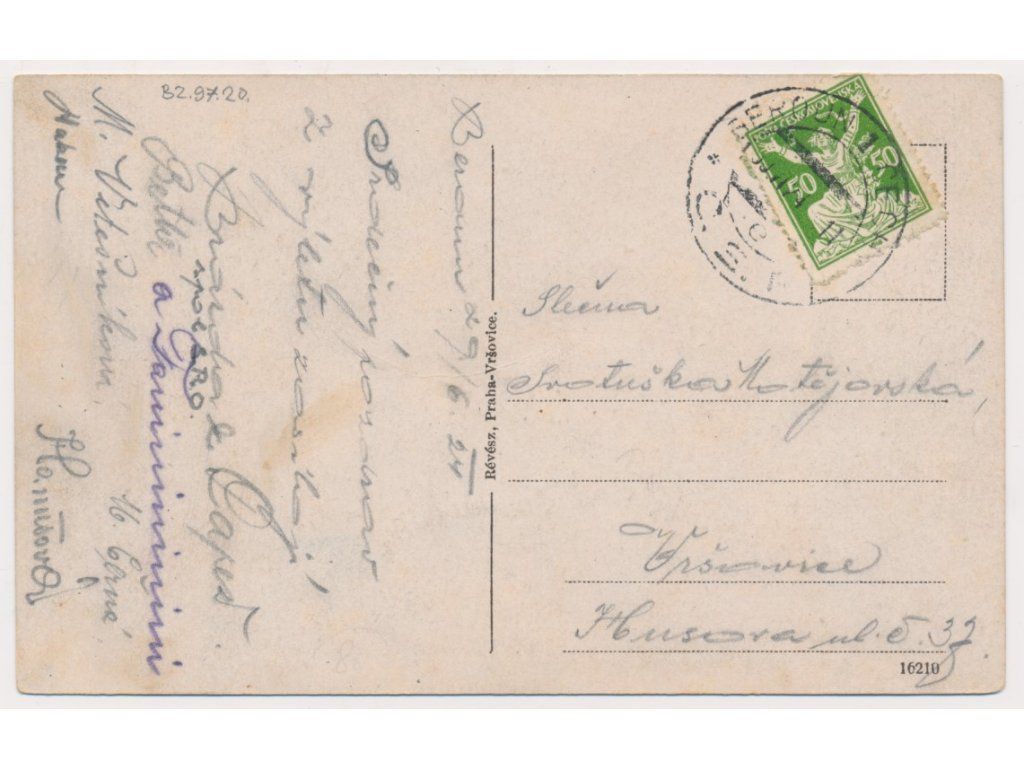 02 - Beroun, Oživená partie z náměstí, prošlá poštou 1924