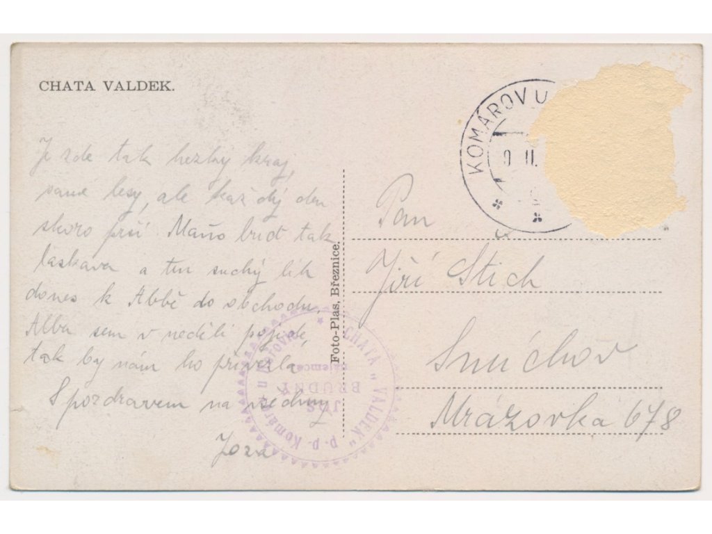 pohlednice prošlá poštou, stav odpovídá použití, uložení a stáří