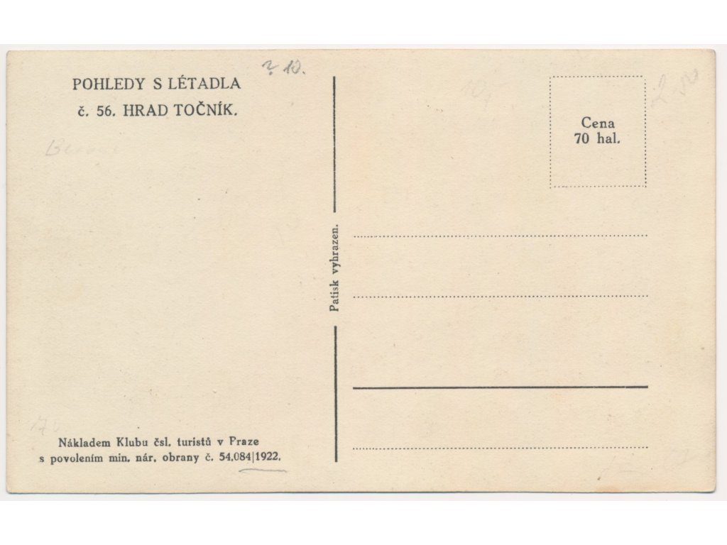 02 - Berounsko, hrad Točník, letecký pohled č. 56, cca 1922