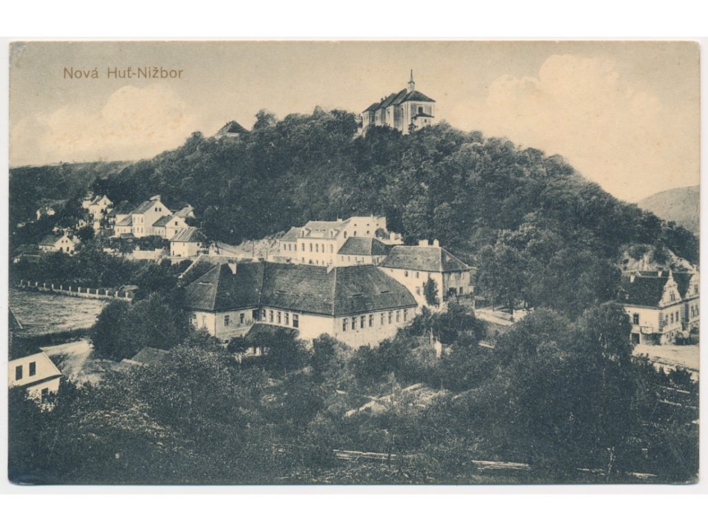 02 - Berounsko, Nižbor, Nová Huť, pohled na obec, zámek, cca 1912