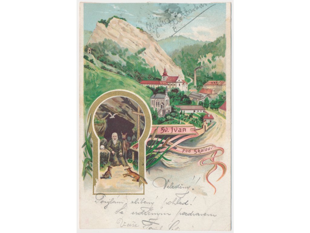 02 - Berounsko, Svatý Jan pod Skalou, 2 záběrová koláž s permoníkem, 1901
