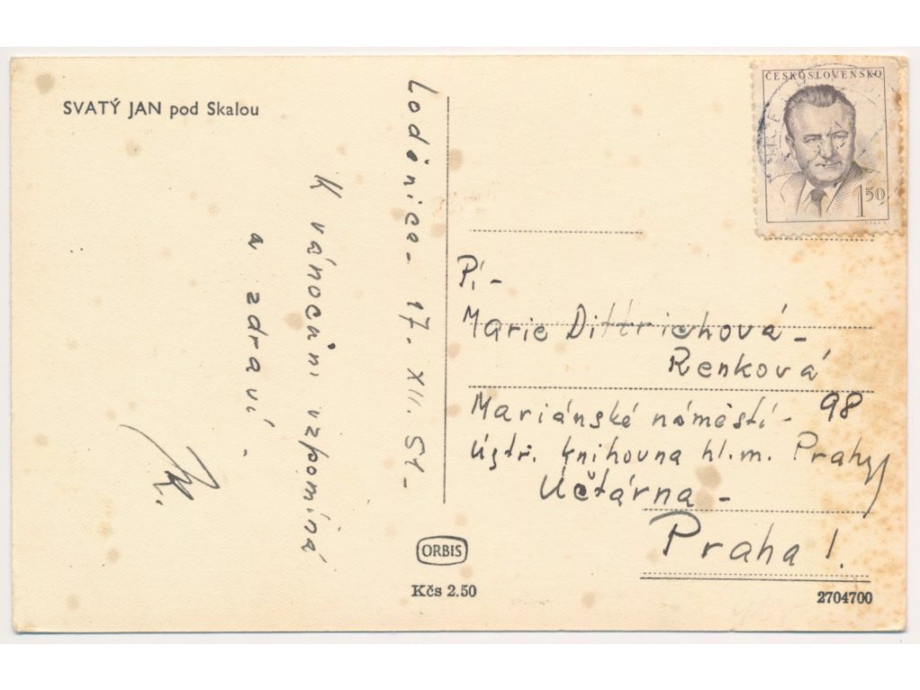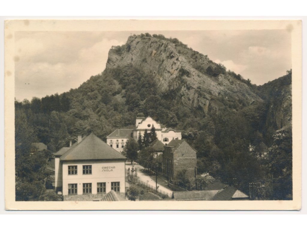 02 - Berounsko, Svatý Jan pod Skalou, Obecná škola a okolí, cca 1951