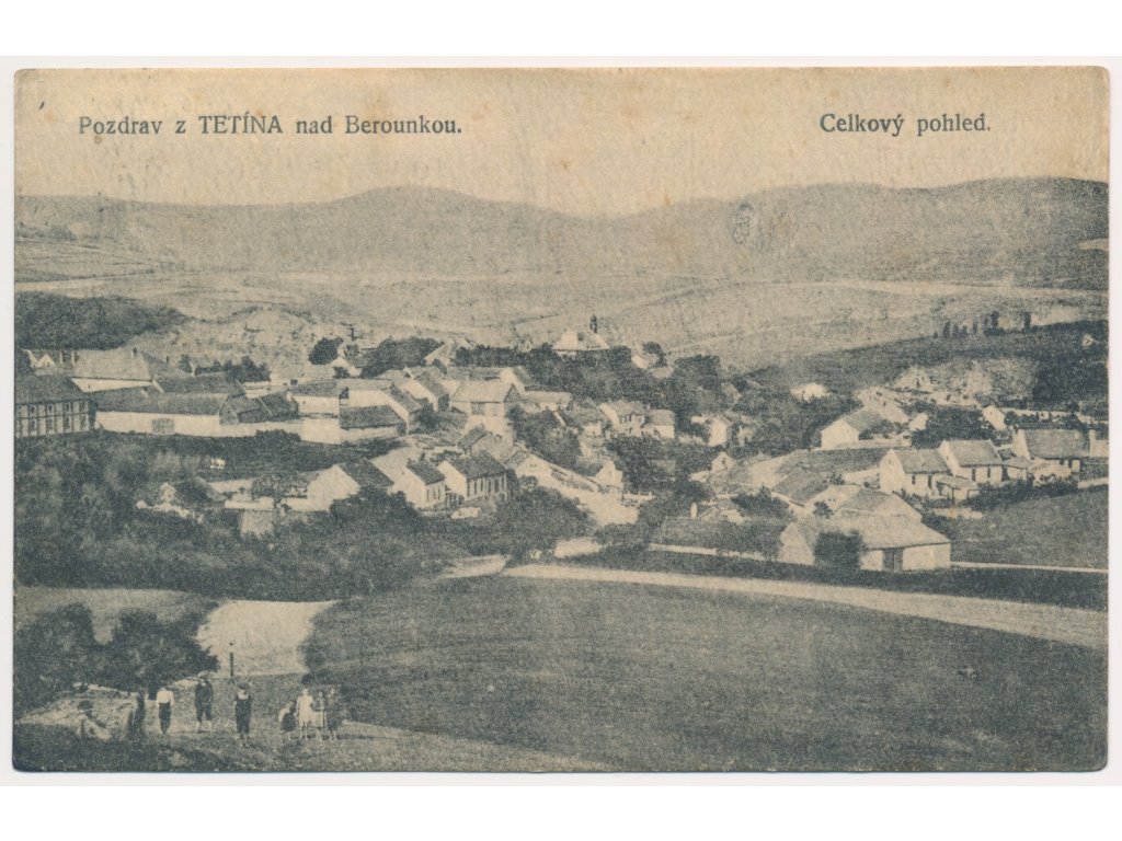 02 - Berounsko, Tetín, Celkový pohled na obec, cca 1920