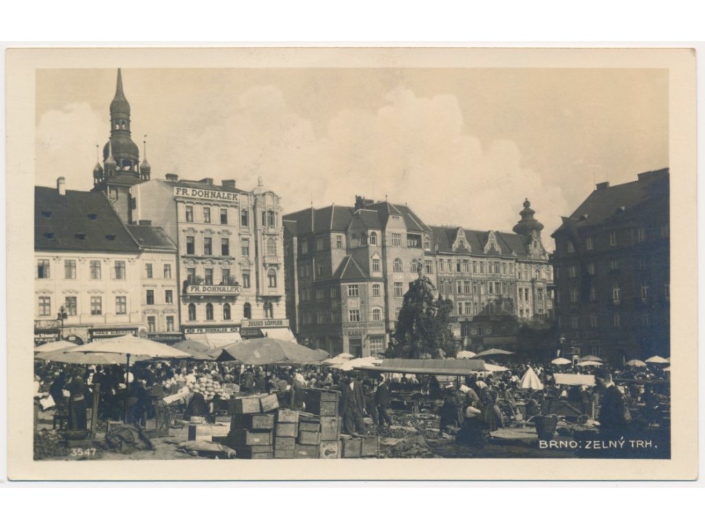 04 - Brno, Zelný trh, oživená partie se stánky se zeleninou, cca 1931