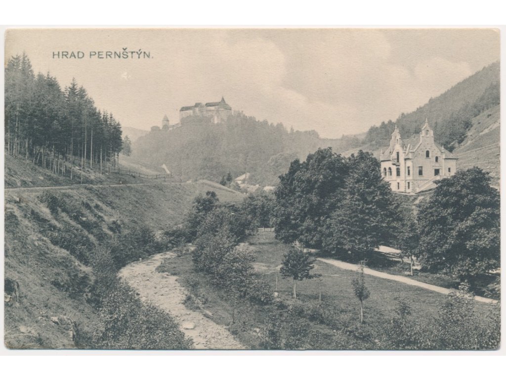 05 - Brno-venkov, pohled na hrad Pernštejn a okolí, cca 1909