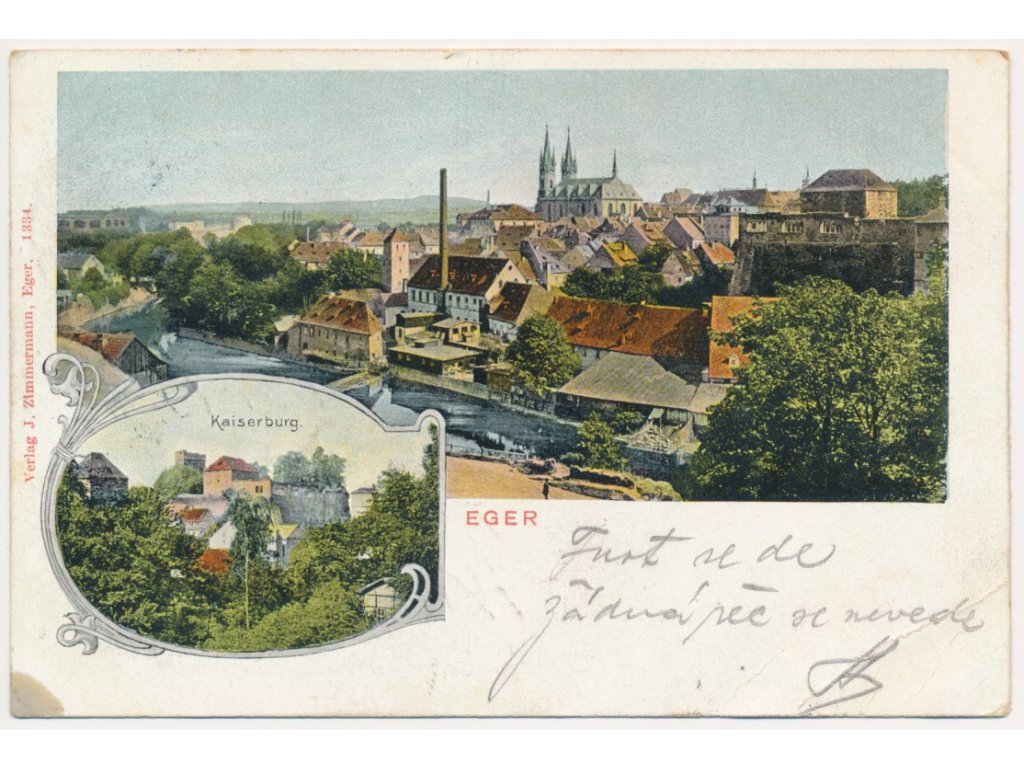 08 - Cheb (Eger), 2 záběrová koláž, pohled na město, hrad, cca 1904