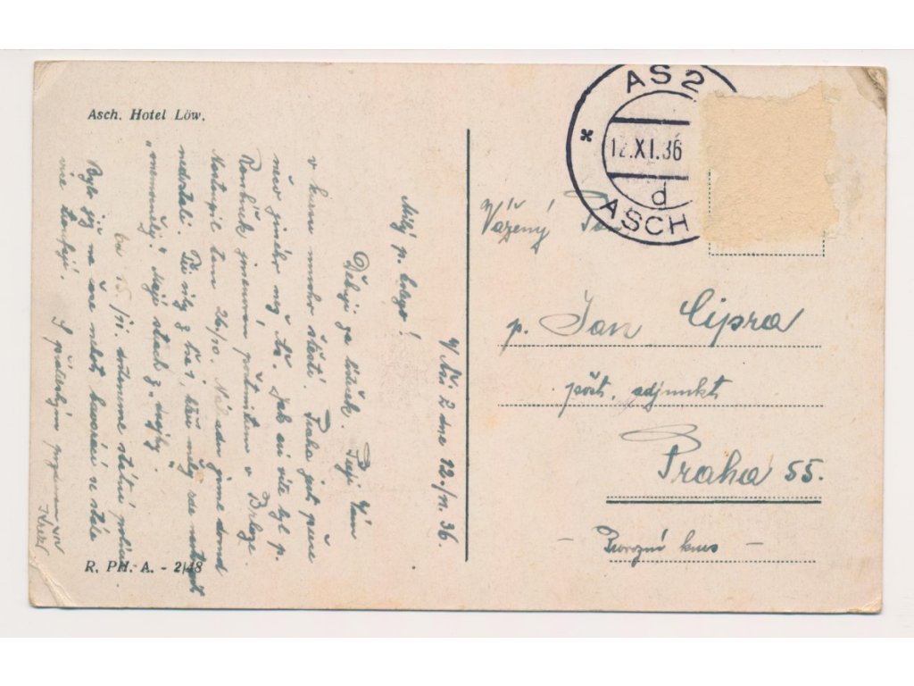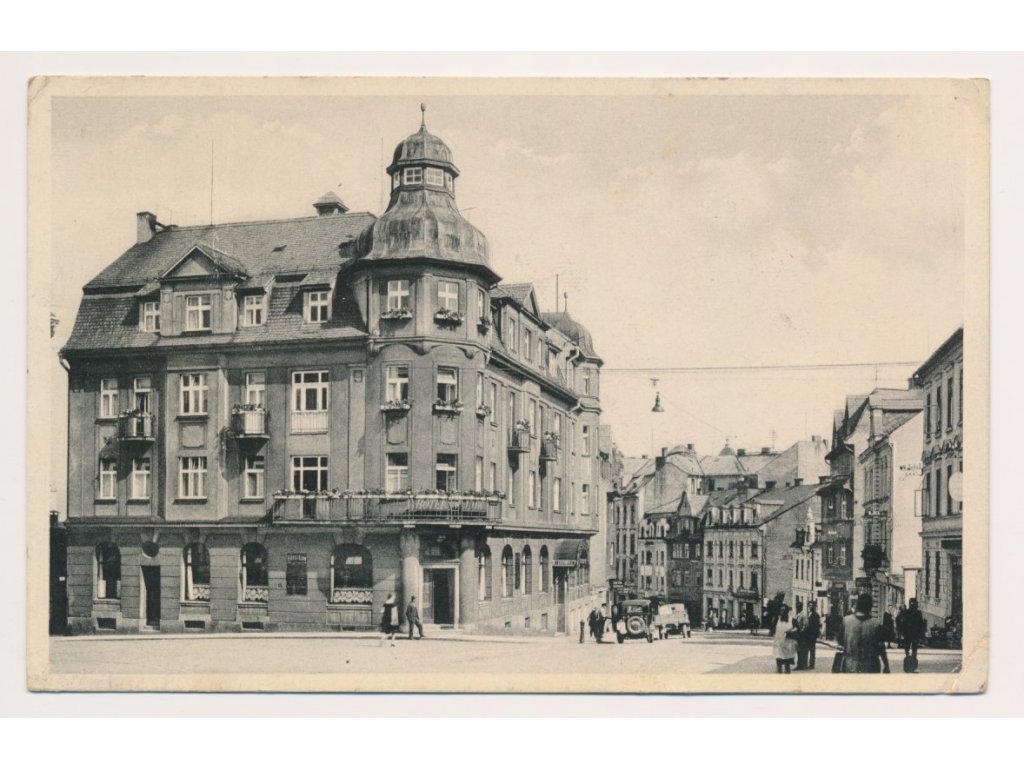 08 - Cheb, oživená partie před hotelem Löw, cca 1936
