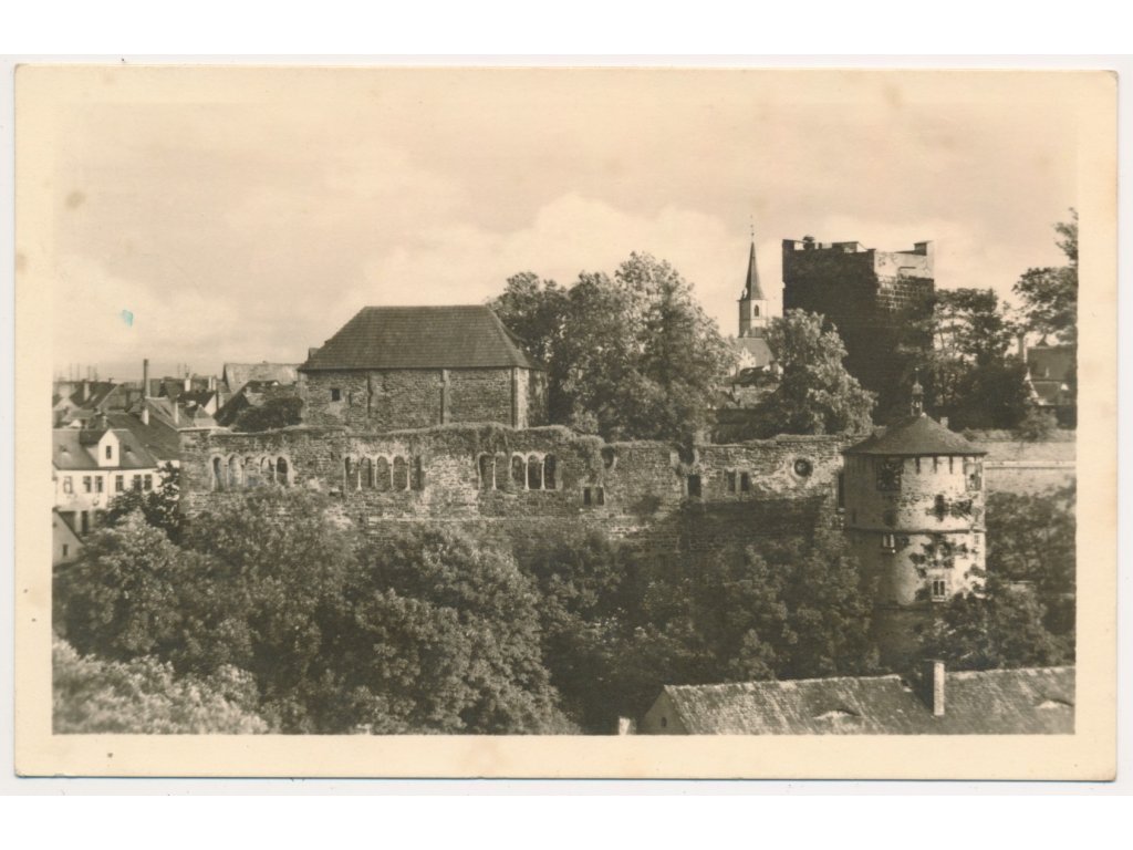 08 - Cheb, pohled na Chebský hrad a hradby, cca 1953