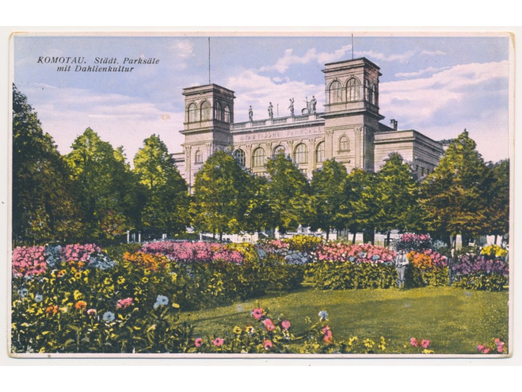 09 - Chomutov, městské divadlo a rozkvetlý park, cca 1926