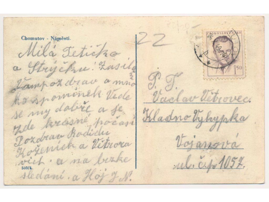 09 - Chomutov, oživená partie z náměstí, cca 1949