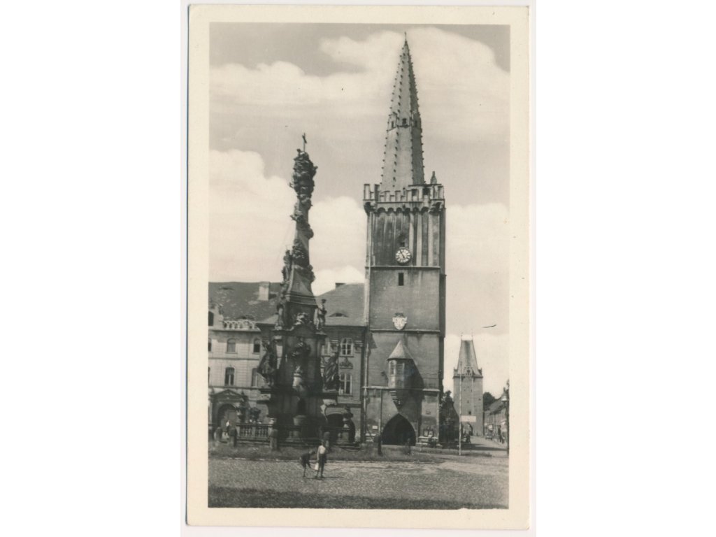 09 - Chomutovsko, Kadaň, oživené náměstí před radnicí, cca 1955