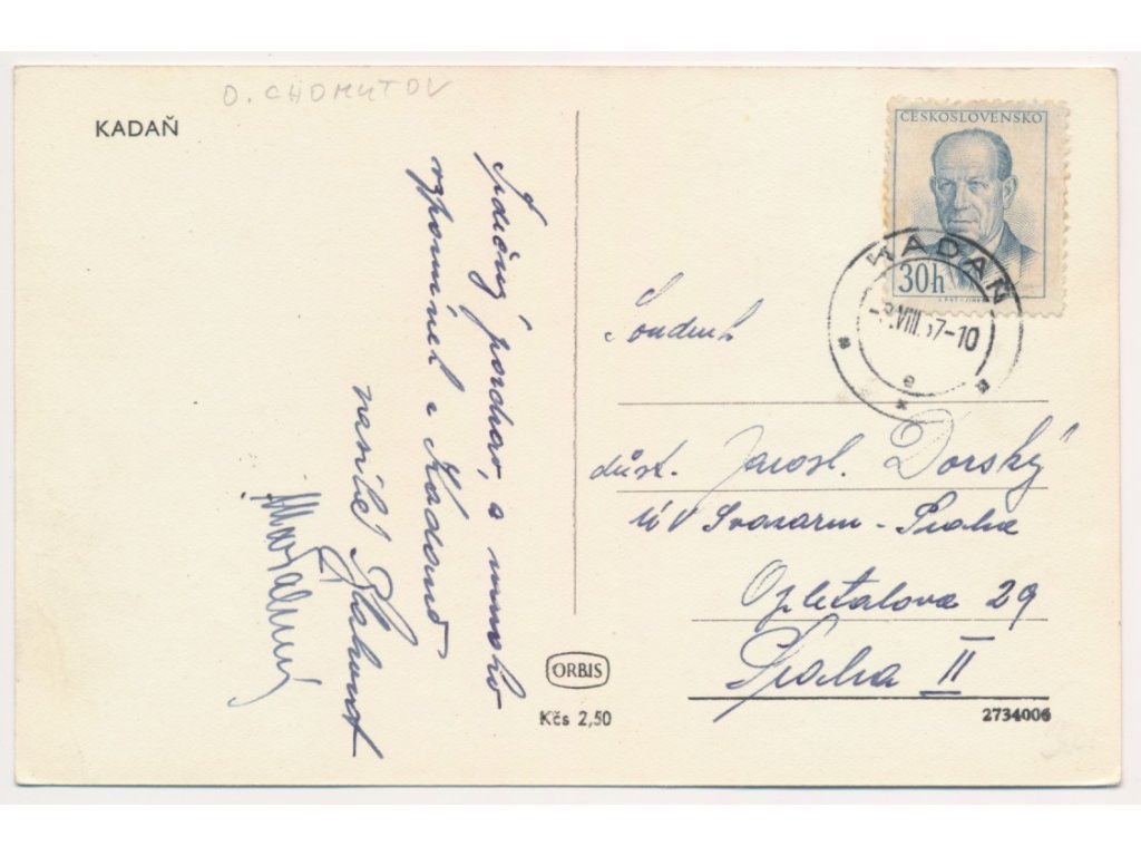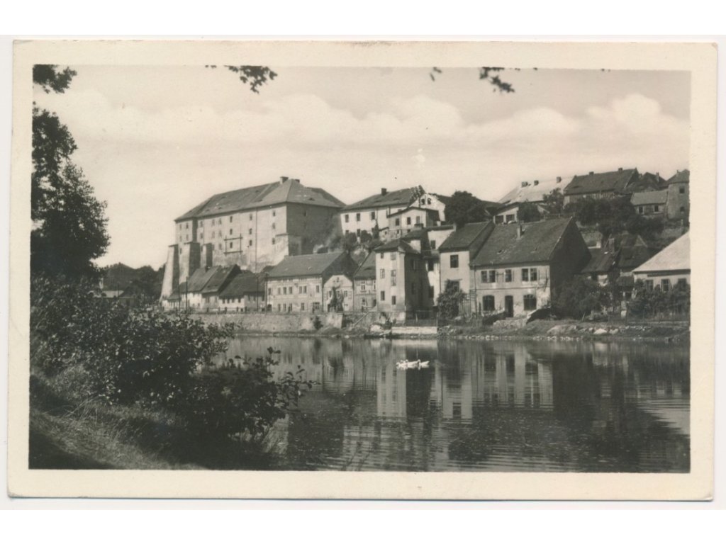 09 - Chomutovsko, Kadaň, pohled na Kadaňský hrad od řeky, cca 1957