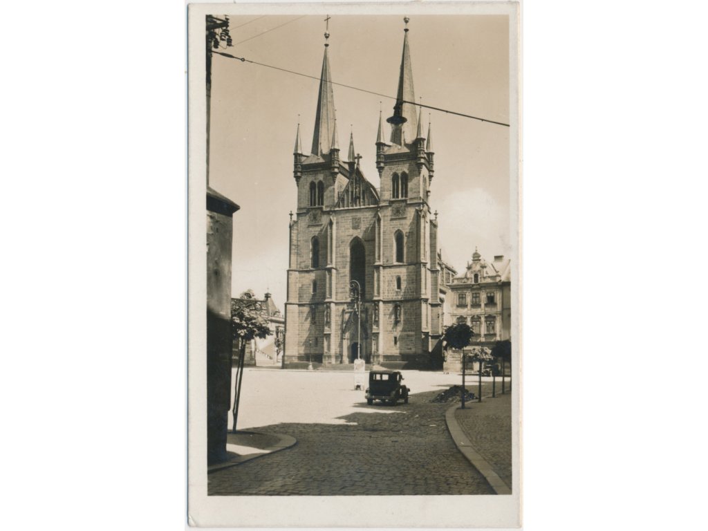 10 - Chrudim, partie s automobilem u Chrámu sv. Salvátora, cca 1938