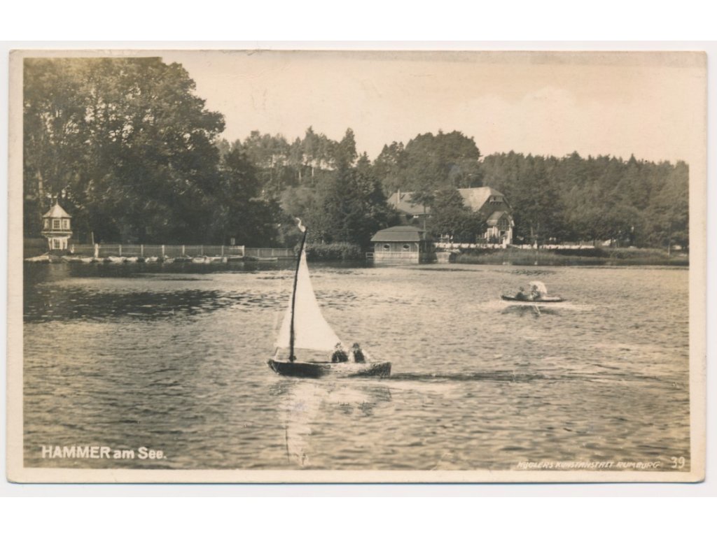 11 - Českolipsko, Hamr na Jezeře, oživená partie s loďkou, cca 190