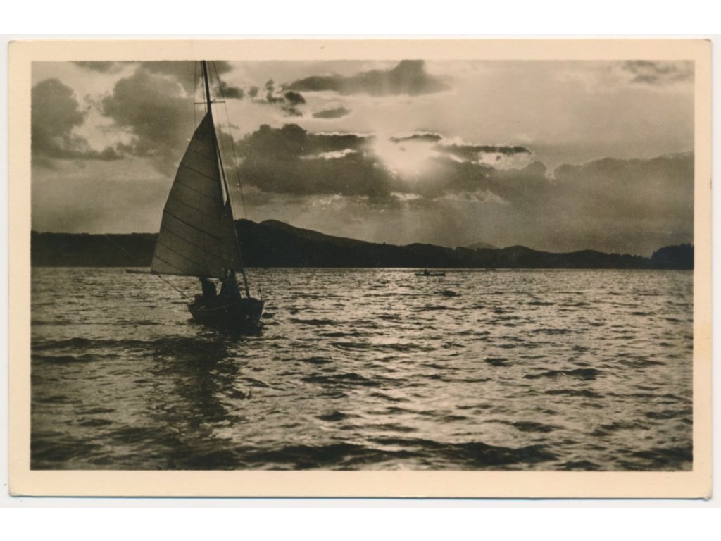 11 - Českolipsko, Letovisko Doksy, Máchovo jezero s plachetnicí, cca 1950