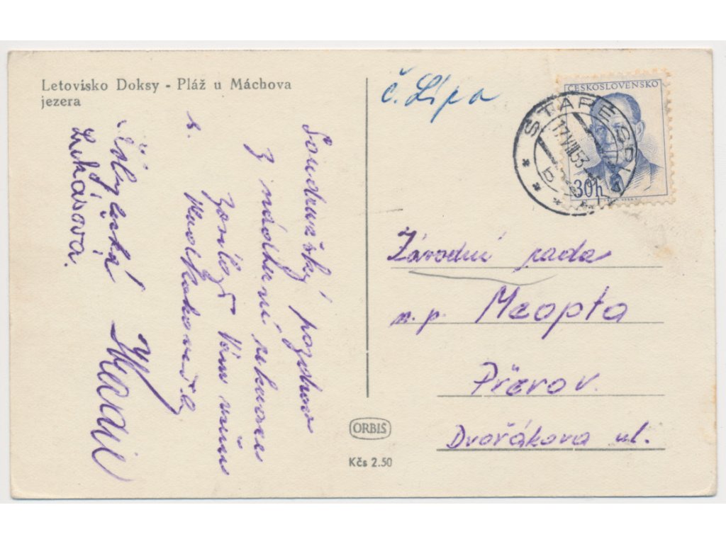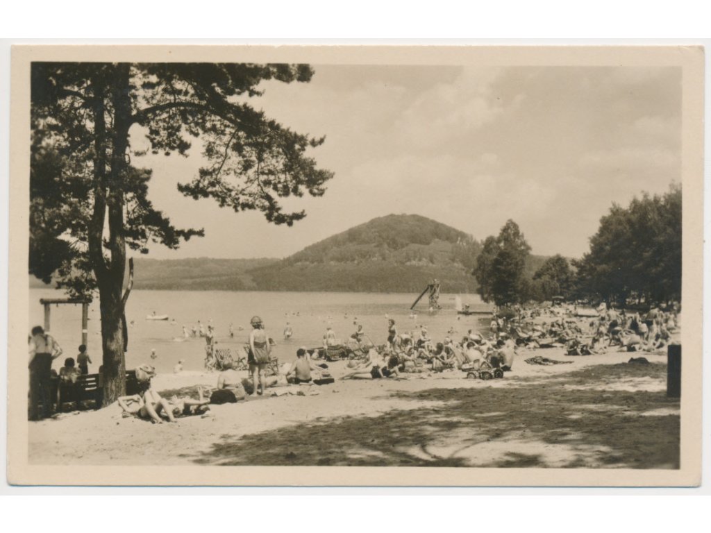 11 - Českolipsko, Letovisko Doksy, oživená pláž u Máchova jezera, 1953