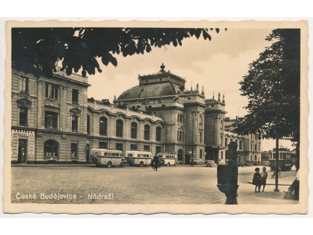 12 - České Budějovice, Nádraží, oživená partie s autobusy, cca 1941