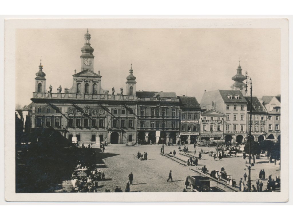 12 - České Budějovice, pohled na oživené náměstí a radnicí, cca 1935