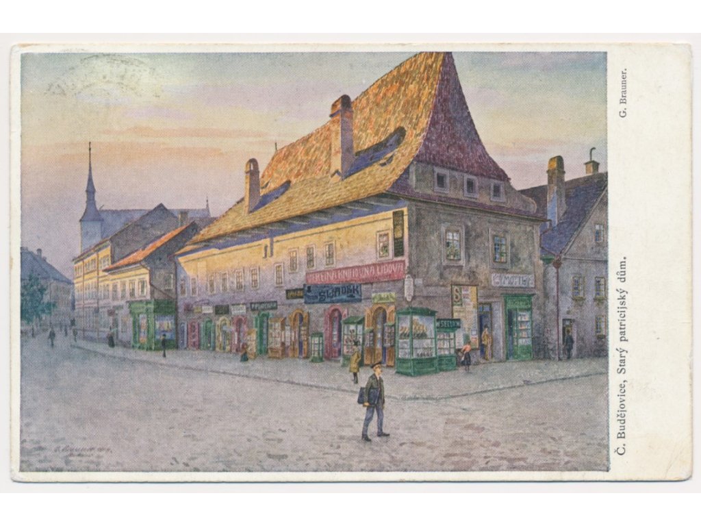 12 - České Budějovice, Starý patricijský dům, oživená partie, G. Brauner, 1914