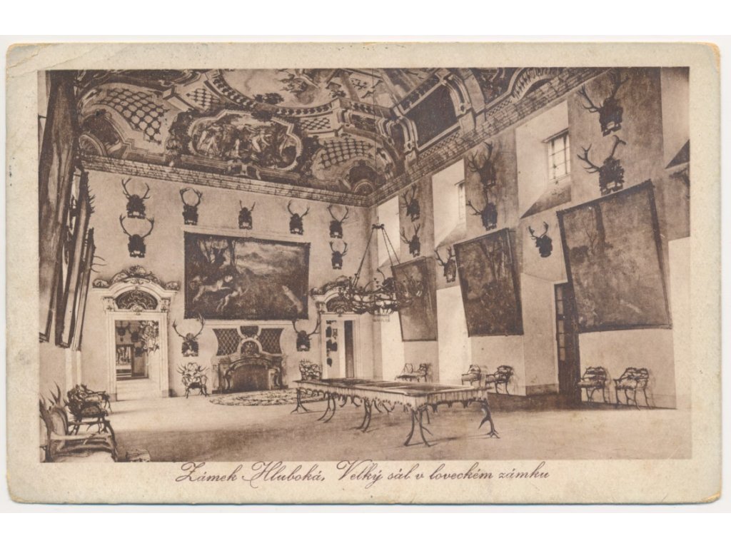 12 - Českobudějovicko, Hluboká nad Vltavou, Velký sál v loveckém zámku, 1927