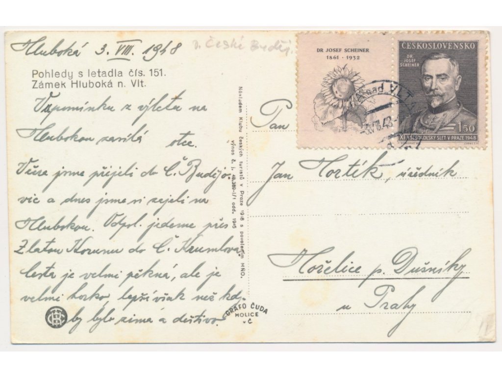 12 - Českobudějovicko, Hluboká nad Vltavou, Zámek, letecký pohled, č. 151, 1945