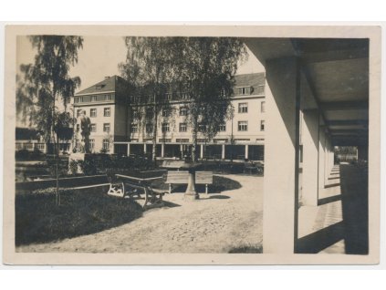12 - Český Krumlov, terasa hotelu Růže, 2 záběr, 1931, prošlá poštou