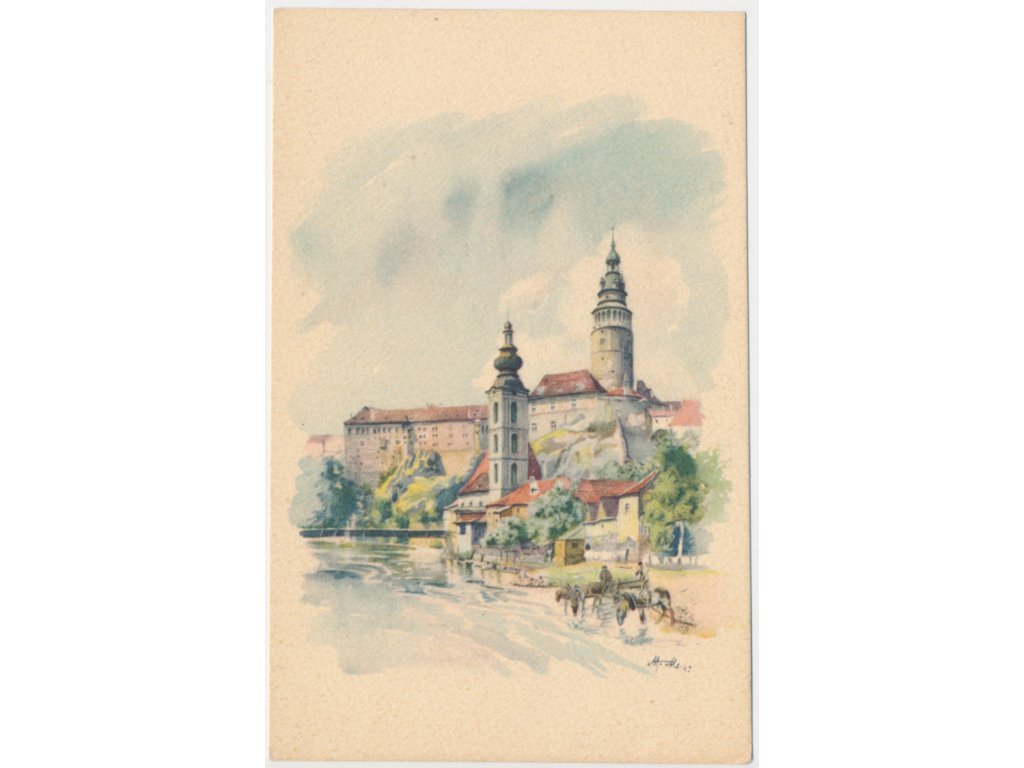 13 - Český Krumlov, zámek a okolí, malíř A. J. Alex, cca 1930