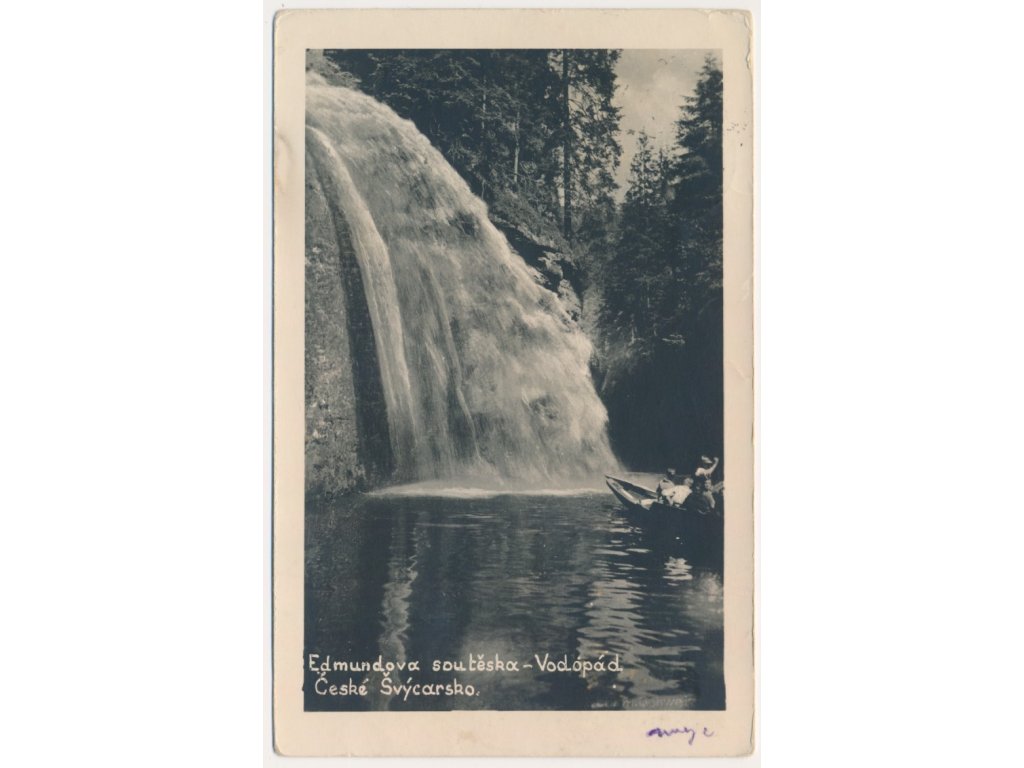 14 - Děčínsko, Edmundova soutěska, Vodopád, cca 1947