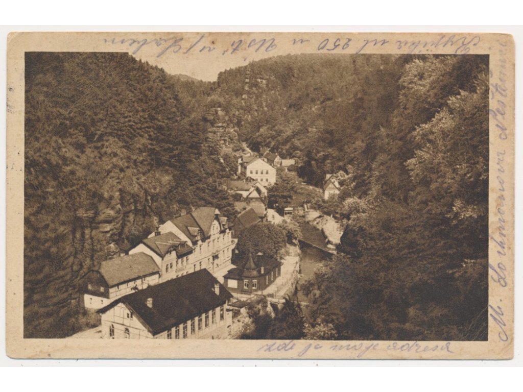 14 - Děčínsko, Hřensko, pohled na obec v údolí, cca 1929
