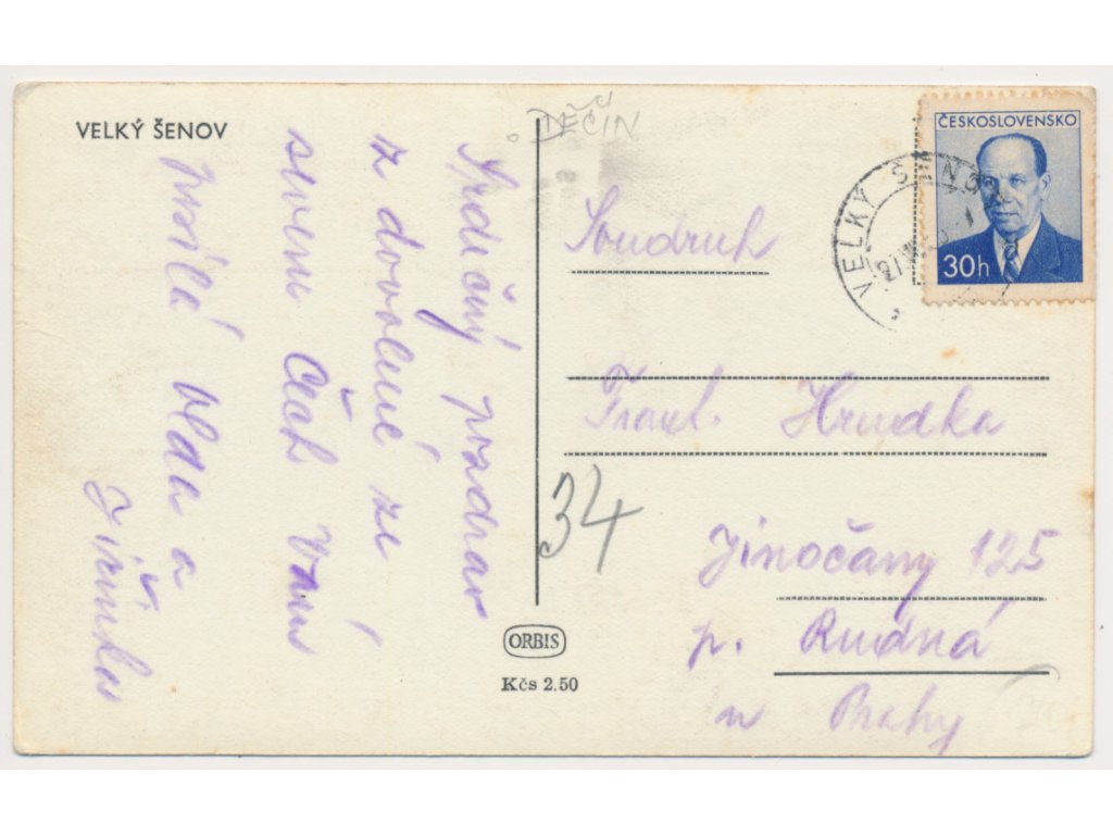 14 - Děčínsko, Velký Šenov, celkový pohled na město, cca 1956