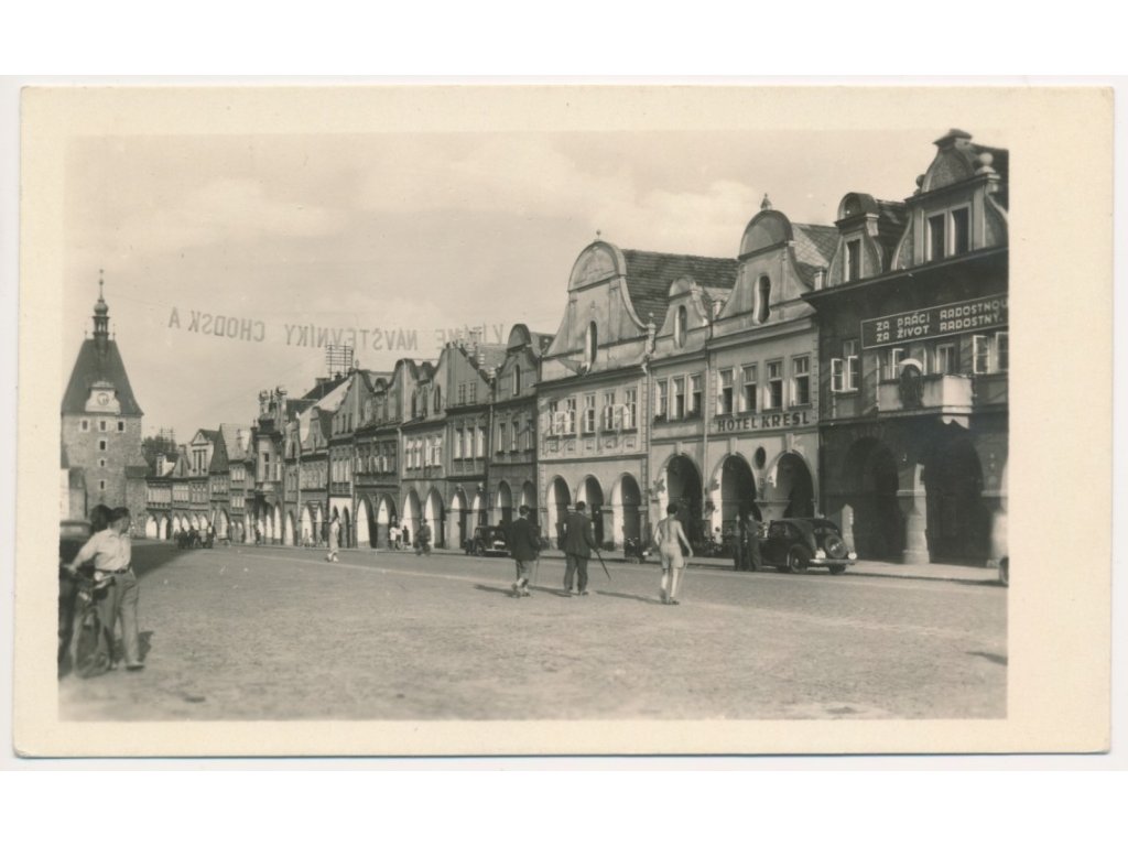 15 - Domažlice, oživená partie z náměstí, cca 1952