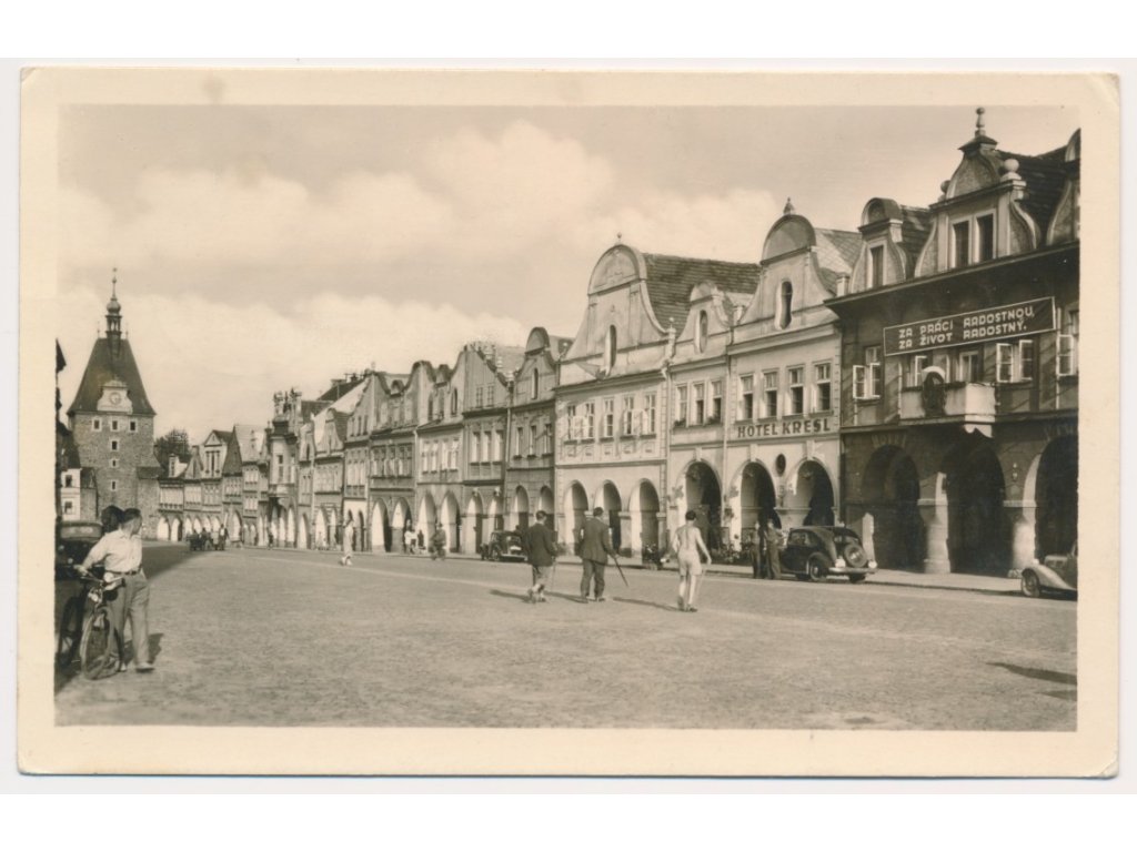 15 - Domažlice, oživená partie z náměstí, cca 1952