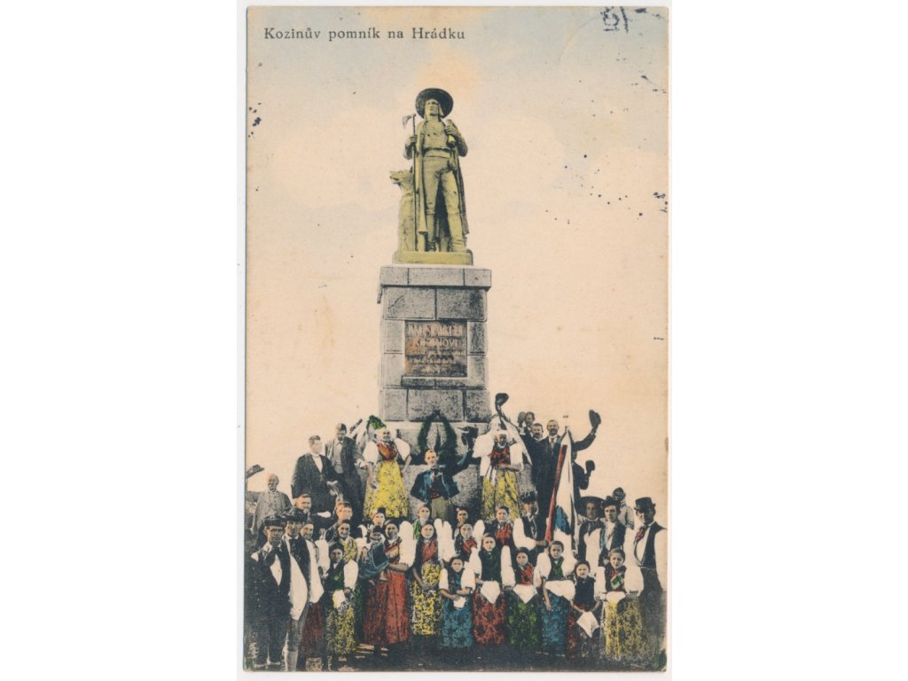 15 - Domažlicko, Kozinův pomník na Hrádku, oživená partie, cca 1935