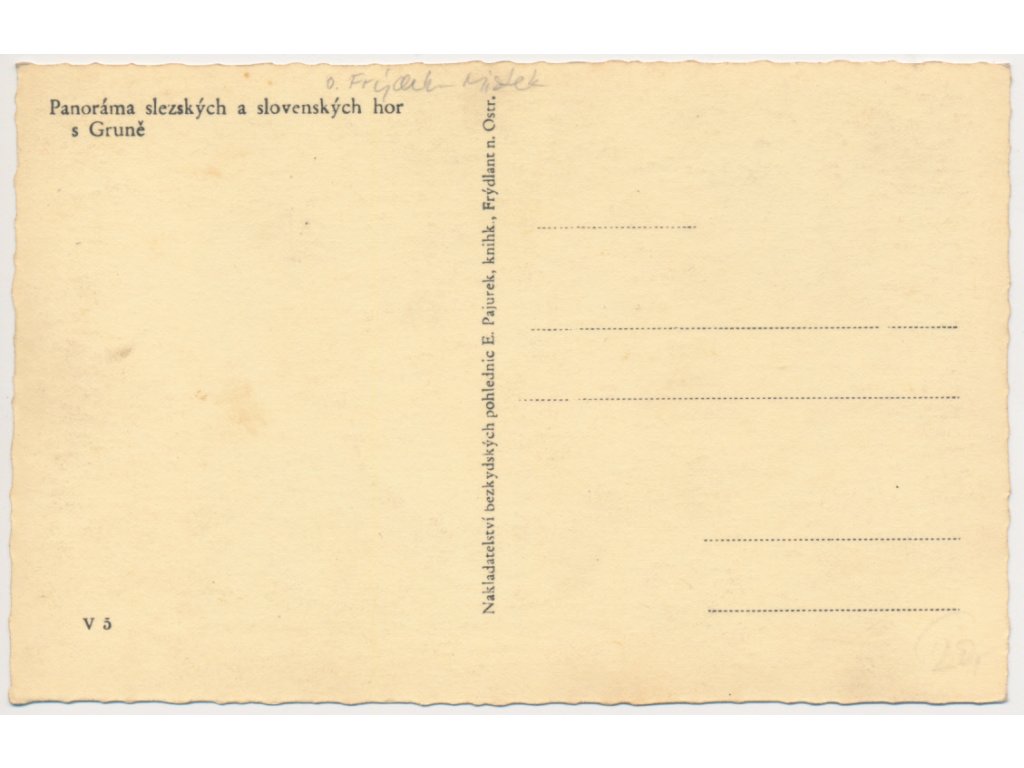 16 - Frýdeckomístecko, Panorama slezských a slovenských hor z Gruně, cca 1935