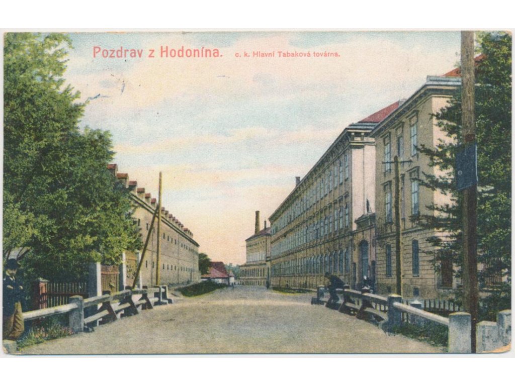 18 - Hodonín, oživená partie před Tabákovou továrnou, cca 1910