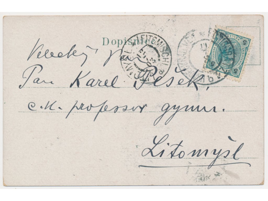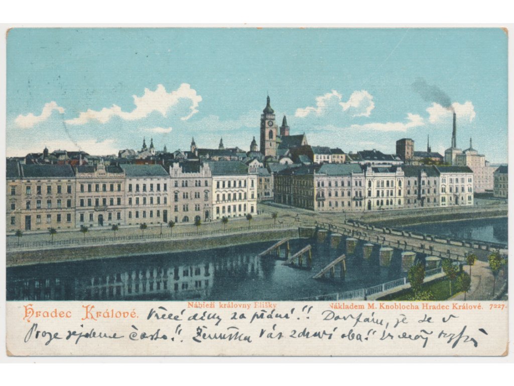 19 - Hradec Králové, Eliščino nábřeží, prošlá poštou 1903