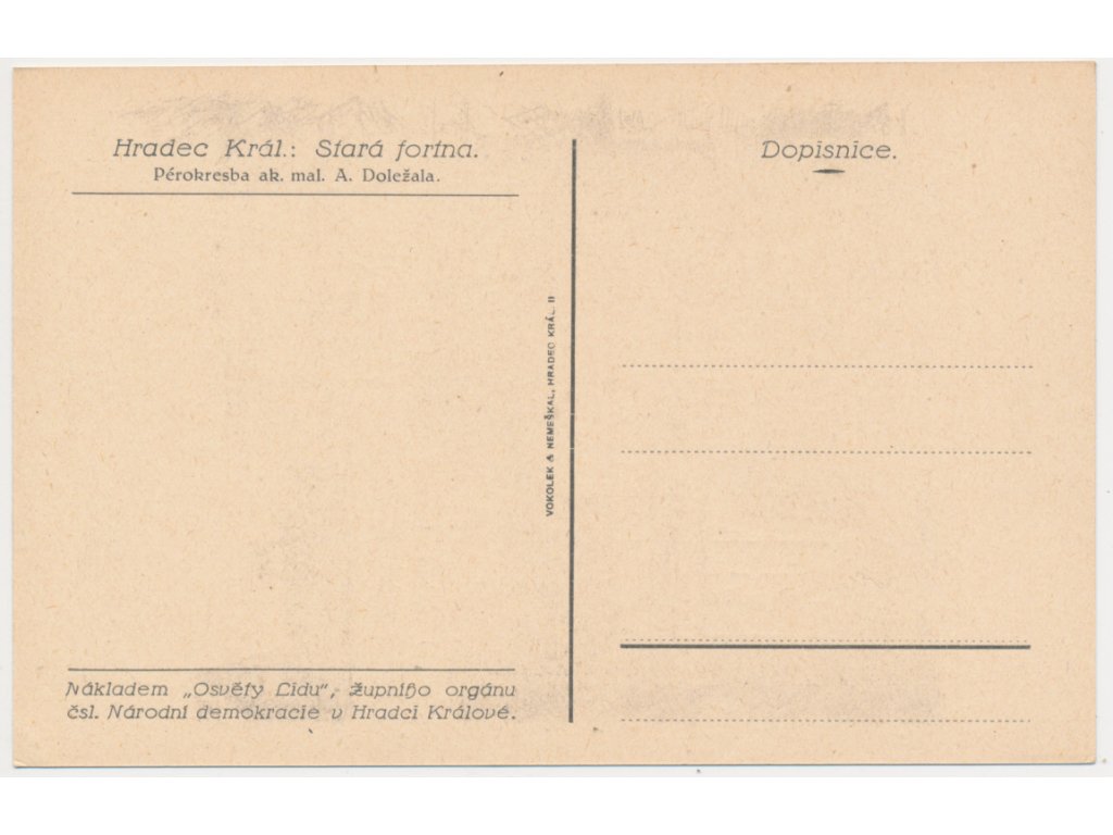 19 - Hradec Králové, Stará fortna, perokresba ak. mal. A. Doležala, cca 1924