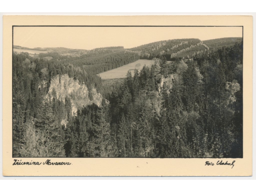 20 - Jablonecko, Návarov, Pohled na zříceninu hradu a okolí, cca 1935