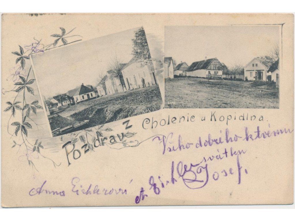 22 - Jičínsko, Cholenice, 2 - záběrová koláž, partie z návsi, cca 1901