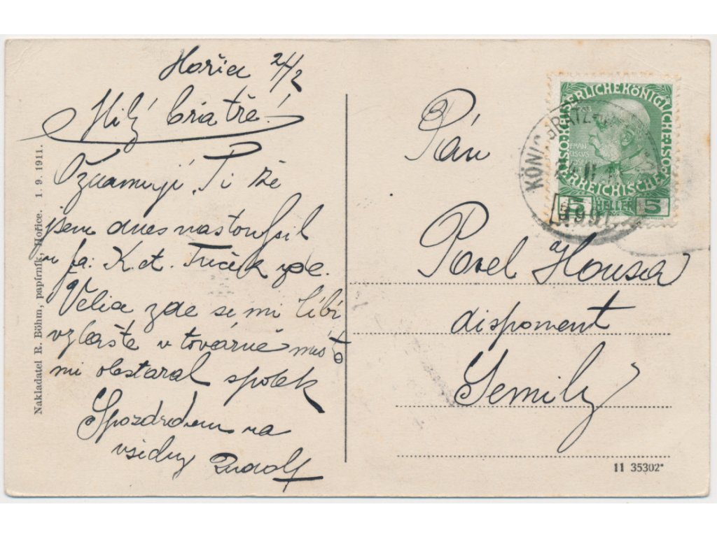 pohlednice prošlá poštou, stav odpovídá použití, uložení a stáří