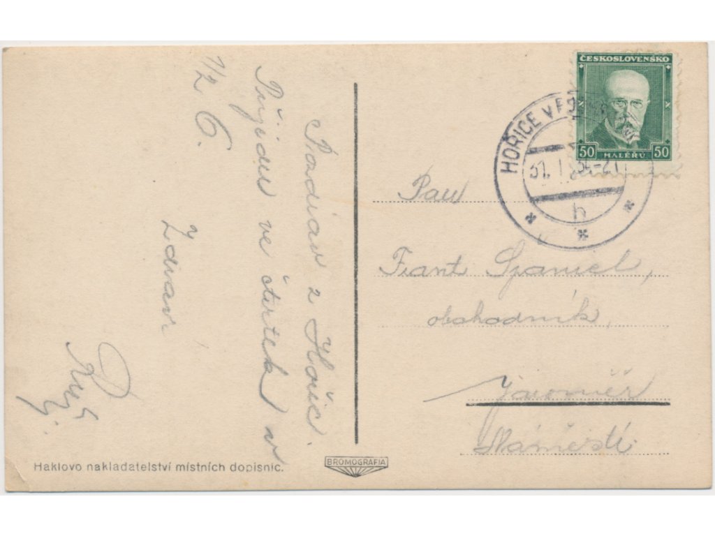 pohlednice prošlá poštou, stav odpovídá použití, uložení a stáří