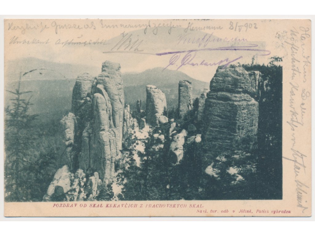 22 - Jičínsko, Prachovské skály, Krkavčí skály, prošlá poštou 1902