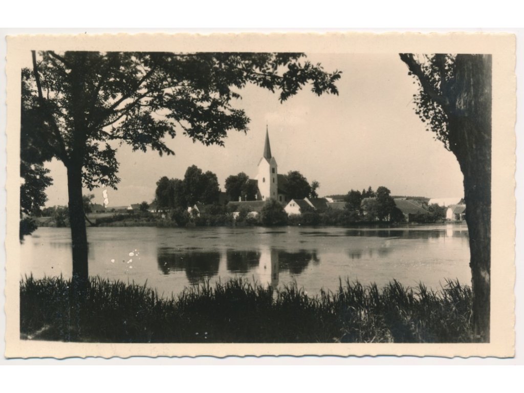 23 - Jihlavsko, Telč, partie s pohledem na kostel, cca 1940