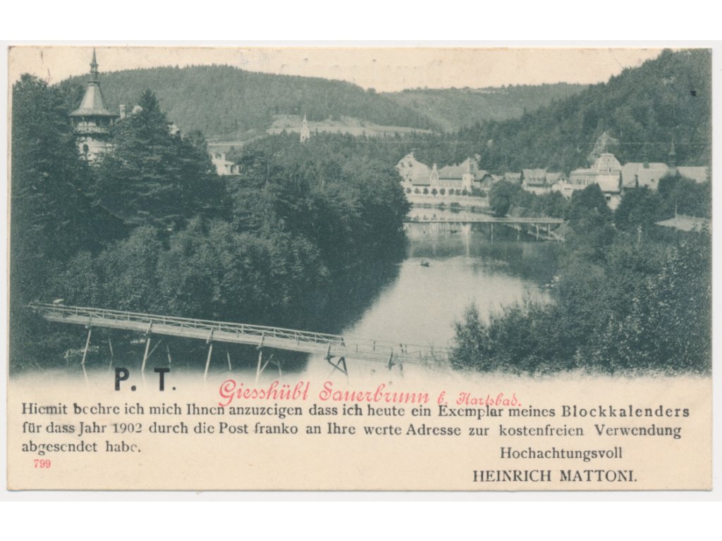 25 - Karlovarsko, Kyselka, Giesshübl Sauerbrunn, pohled na obec, 1901