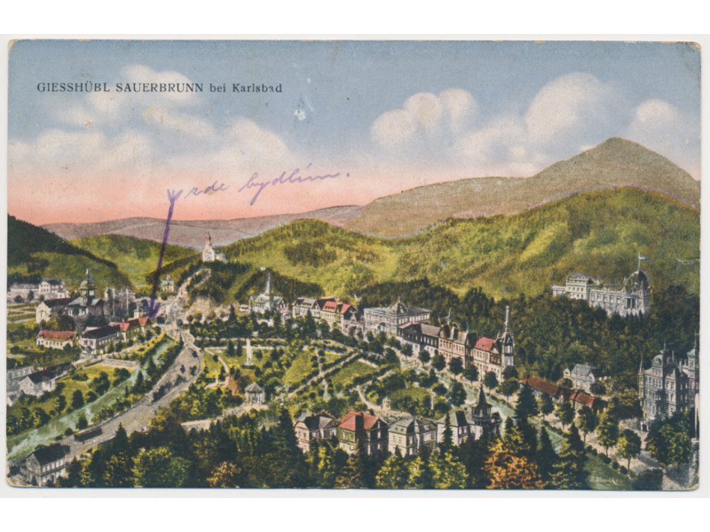 25 - Karlovarsko, Kyselka (Giesshübl-Sauerbrunn), celkový pohled, 1927