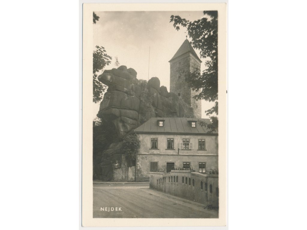 25 - Karlovarsko, Nejdek, Černá věž, dům v podhradí, cca 1950
