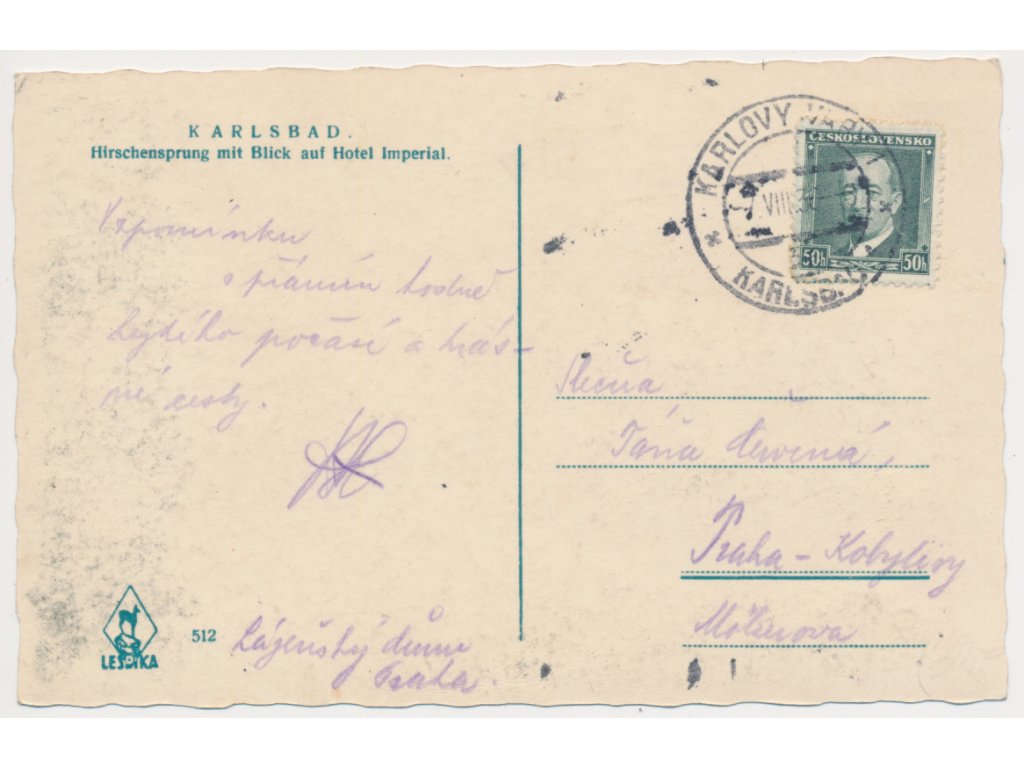25 - Karlovy Vary (Karlsbad), Jelení skok, pohled na Hotel Imperial, 1936
