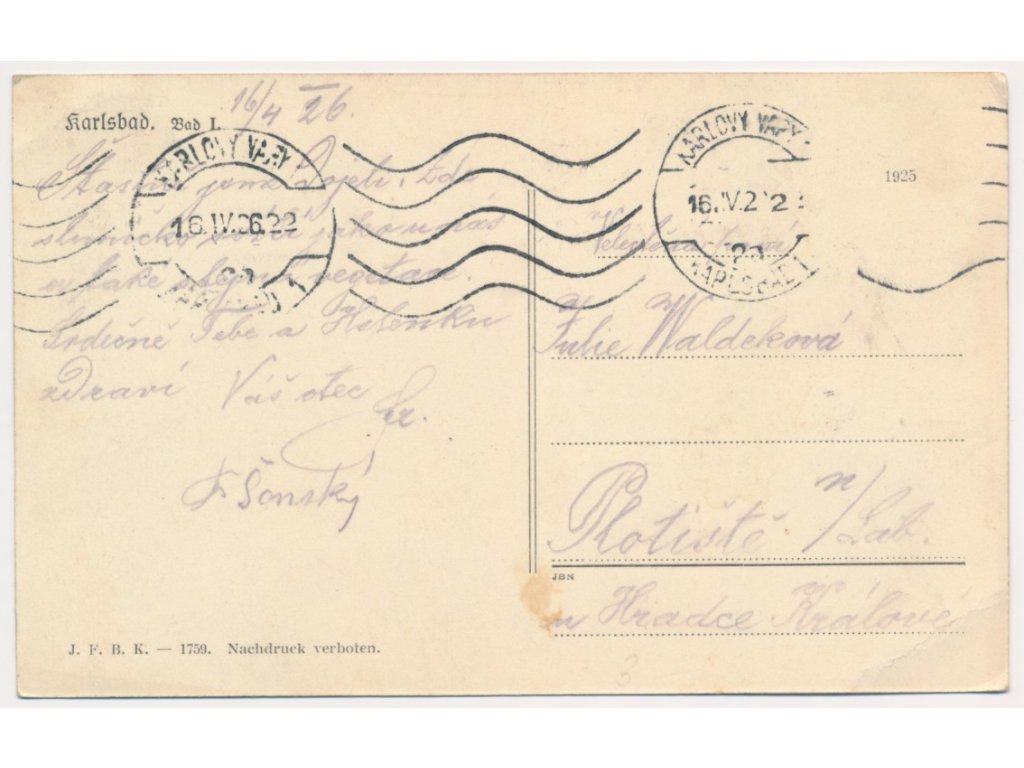 25 - Karlovy Vary (Karlsbad), pohled na lázeňský dům, cca 1926